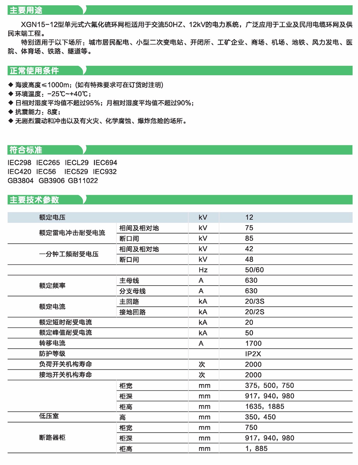 XGN15-12型單元式、模塊化六很化硫環(huán)網(wǎng)柜是新一代以六板化硫開關(guān)作為主開關(guān)而整柜采用空氣絕緣的、適用于配電自動(dòng)化的、既緊湊又可擴(kuò)充的金屬封閉開關(guān)設(shè)備,具有結(jié)構(gòu)簡(jiǎn)單、操作靈活、聯(lián)結(jié)可靠、安裝方便等特點(diǎn),對(duì)各種不同的應(yīng)用場(chǎng)合、不同的用戶要求均能提供令人滿意的技術(shù)方案。